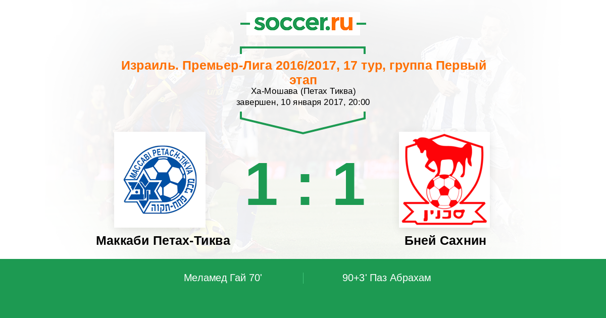 Маккаби Петах-Тиква - Бней Сахнин: обзор матча 10 января 2017