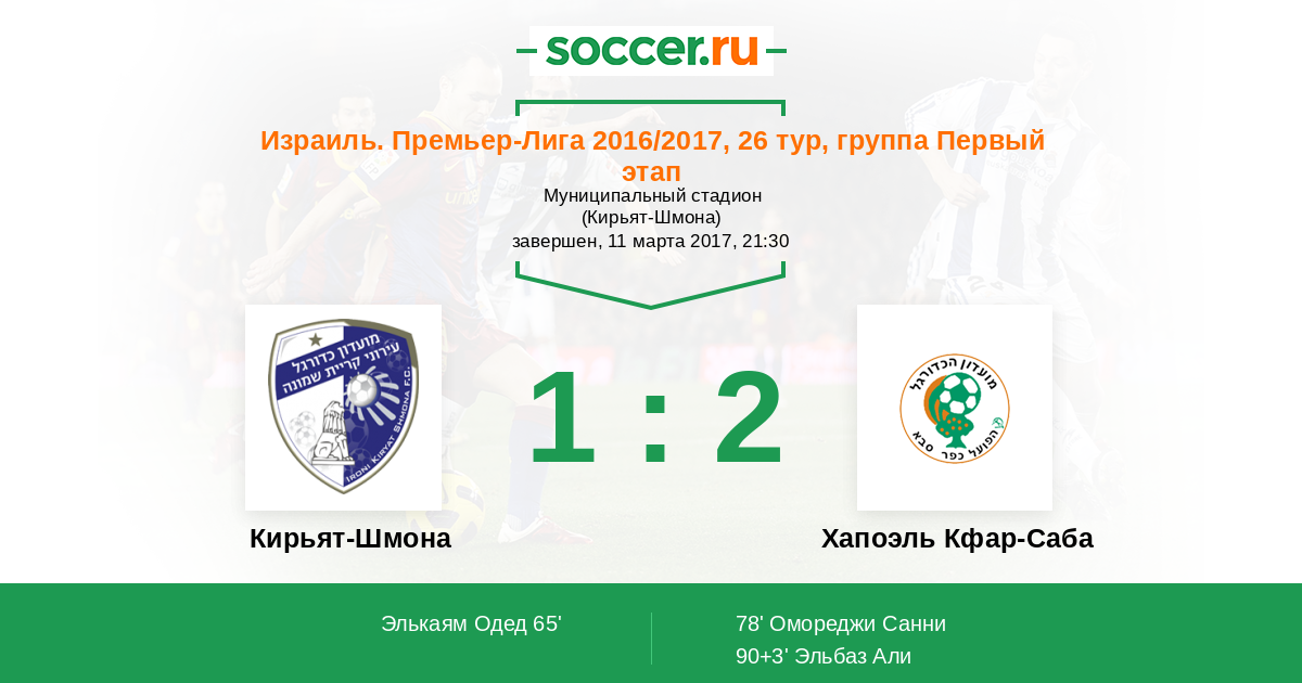 Кирьят-Шмона - Хапоэль Кфар-Саба: обзор матча 11 марта 2017