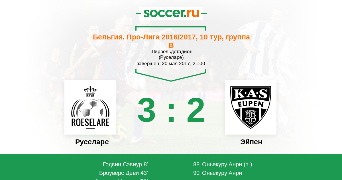 Руселаре - Эйпен: обзор матча 20 мая 2017