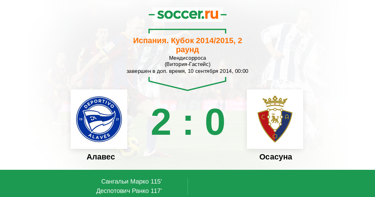 Алавес - Осасуна: обзор матча 10 сентября 2014