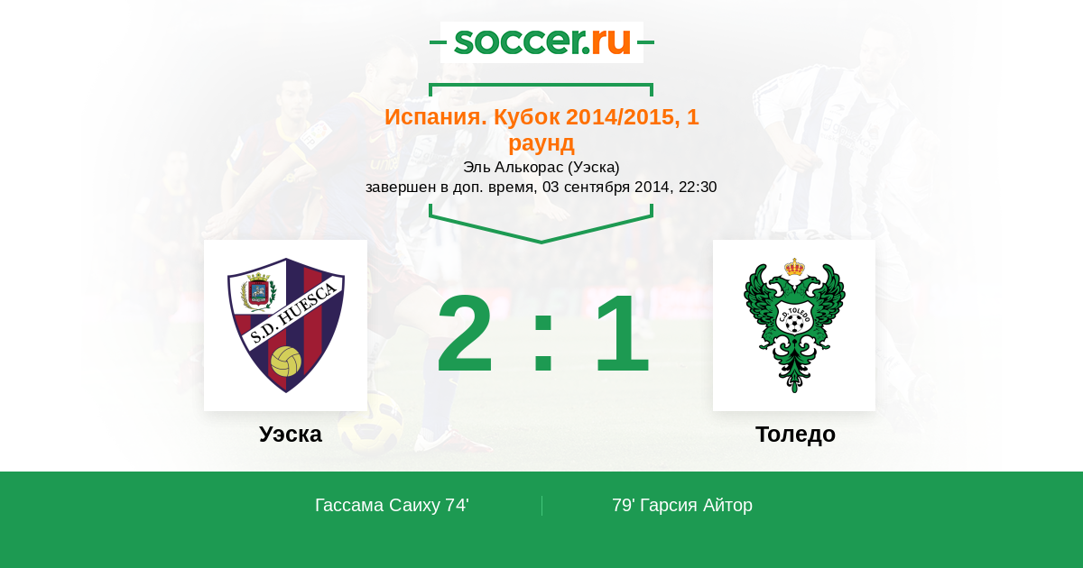 Уэска - Толедо: обзор матча 3 сентября 2014