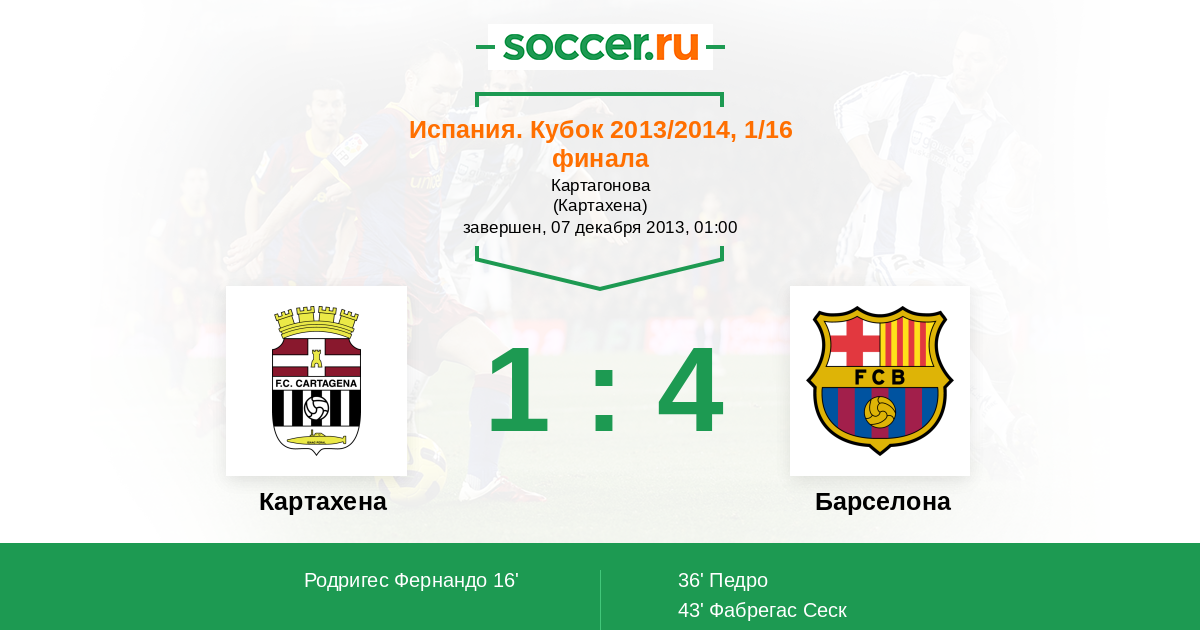 Картахена - Барселона: обзор матча 7 декабря 2013