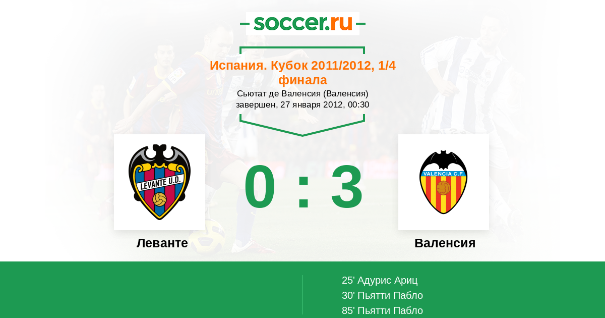 Леванте - Валенсия: обзор матча 27 января 2012