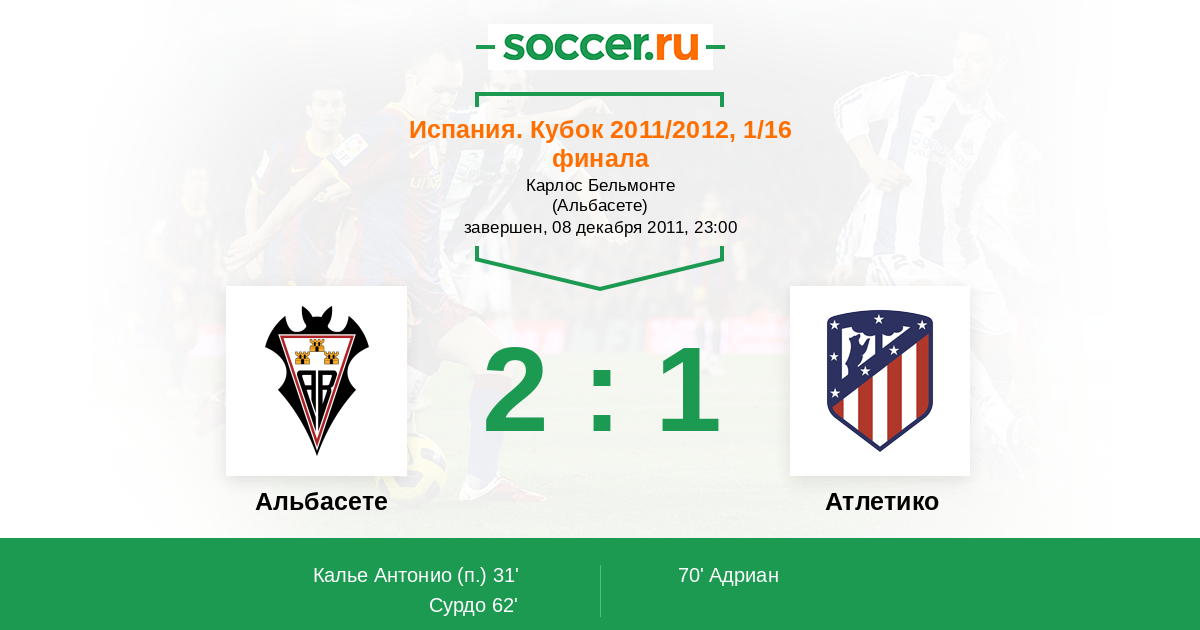 Альбасете - Атлетико: обзор матча 8 декабря 2011