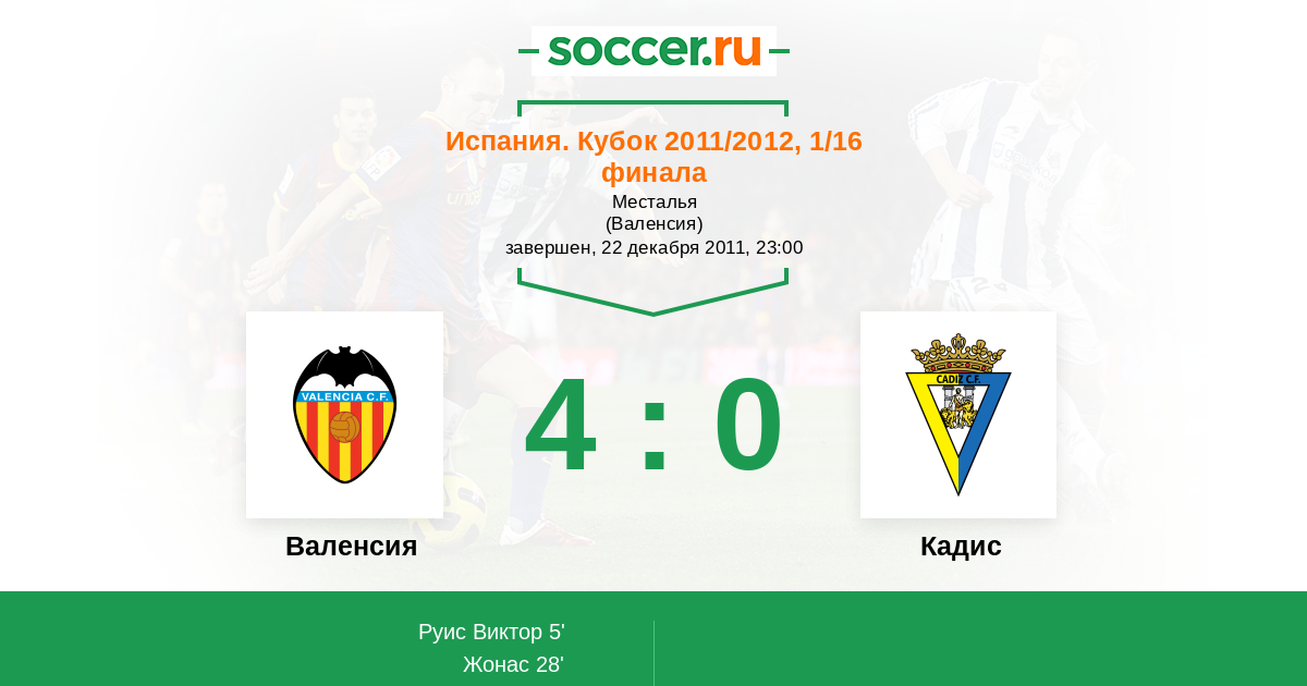 Валенсия - Кадис: обзор матча 22 декабря 2011