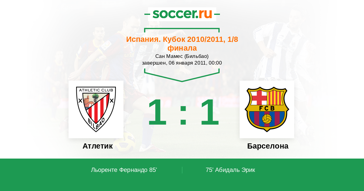 Атлетик - Барселона: обзор матча 6 января 2011