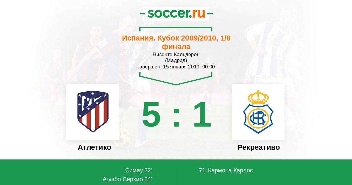 Атлетико - Рекреативо: обзор матча 15 января 2010