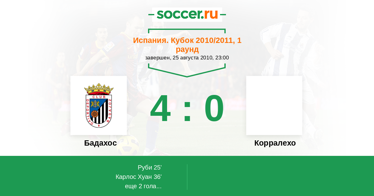 Бадахос - Корралехо: обзор матча 25 августа 2010