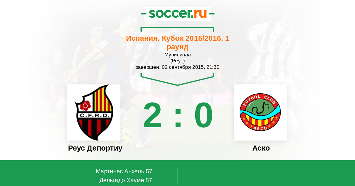 Реус Депортиу - Аско: обзор матча 2 сентября 2015