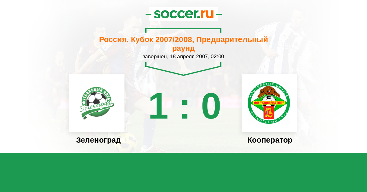 Зеленоград - Кооператор: обзор матча 18 апреля 2007