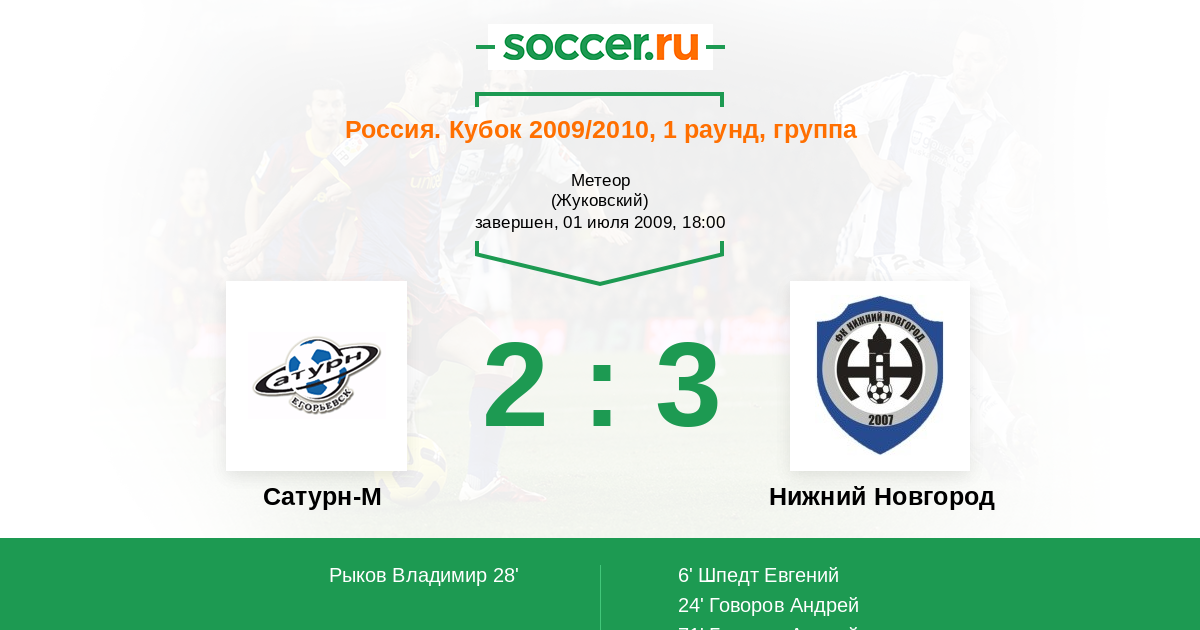 Сатурн-2 - Нижний Новгород: обзор матча 1 июля 2009