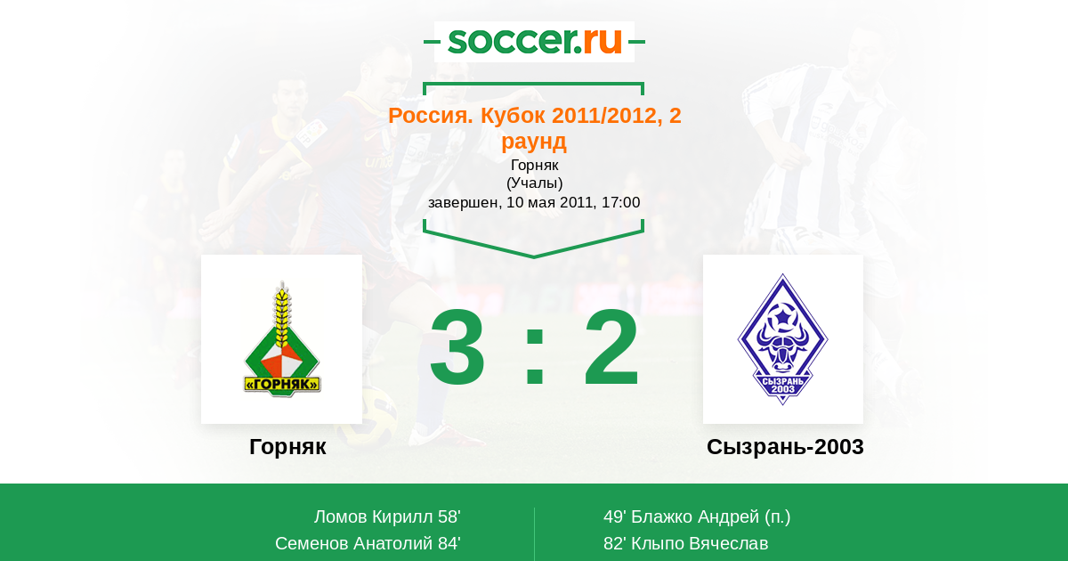 Горняк - Сызрань-2003: обзор матча 10 мая 2011