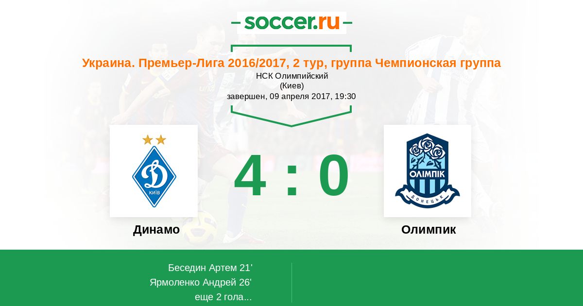 Динамо - Олимпик: обзор матча 9 апреля 2017