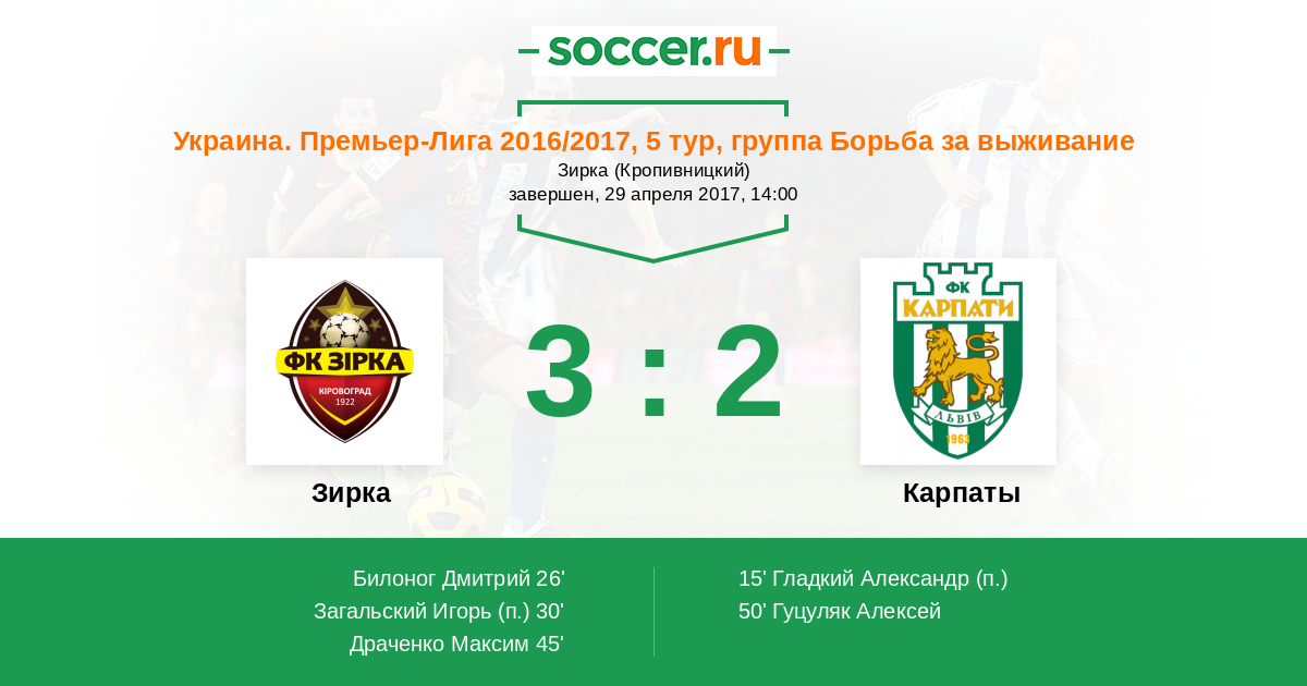 Зирка - Карпаты: обзор матча 29 апреля 2017
