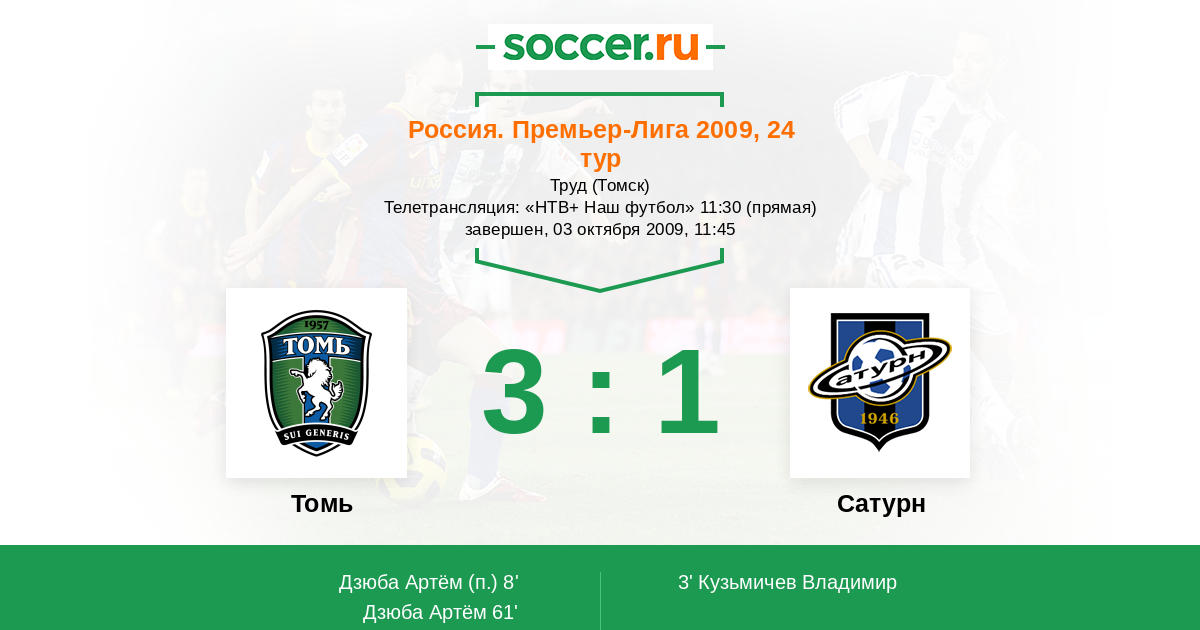 Томь - Сатурн: обзор матча 3 октября 2009