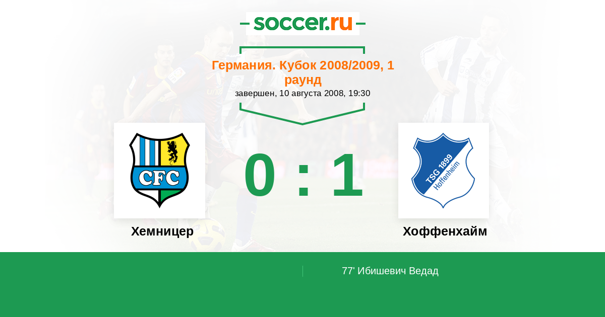 Хемницер - Хоффенхайм: обзор матча 10 августа 2008