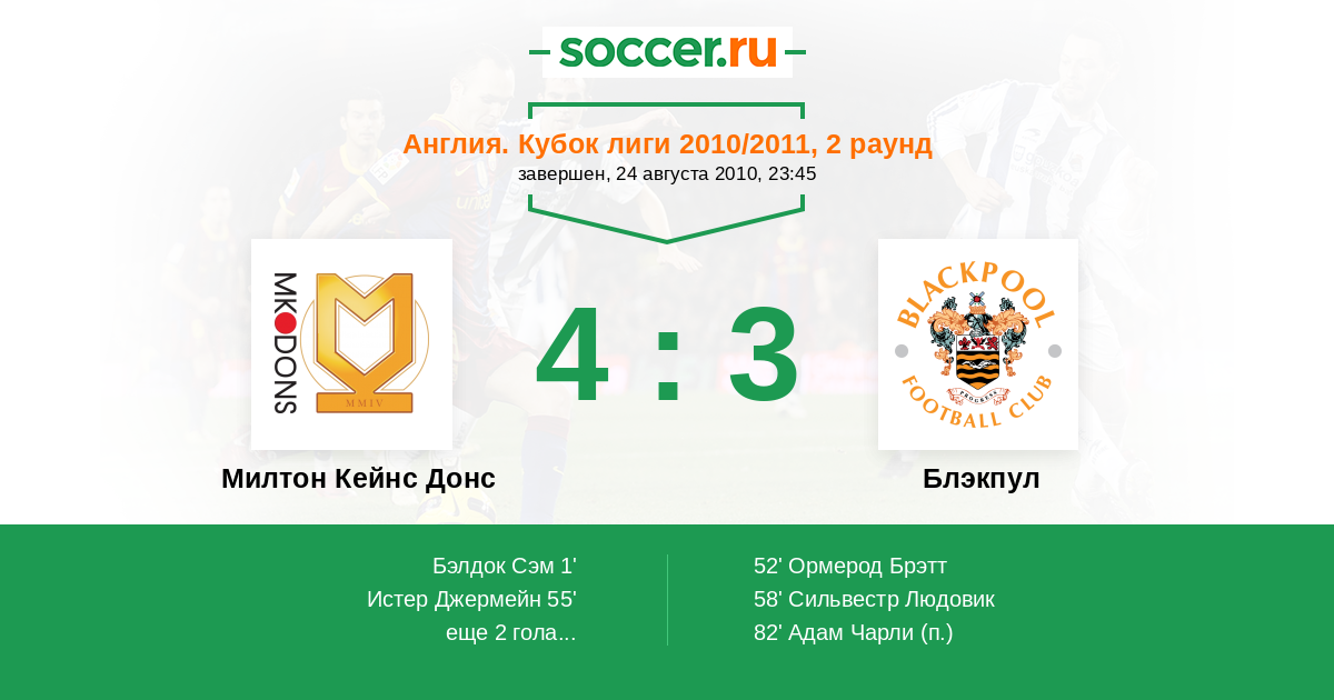 Милтон Кейнс Донс - Блэкпул: обзор матча 24 августа 2010