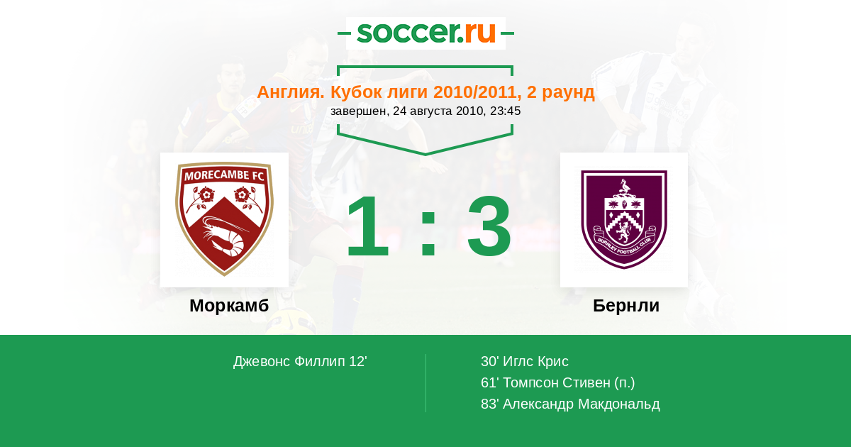 Моркамб - Бернли: обзор матча 24 августа 2010