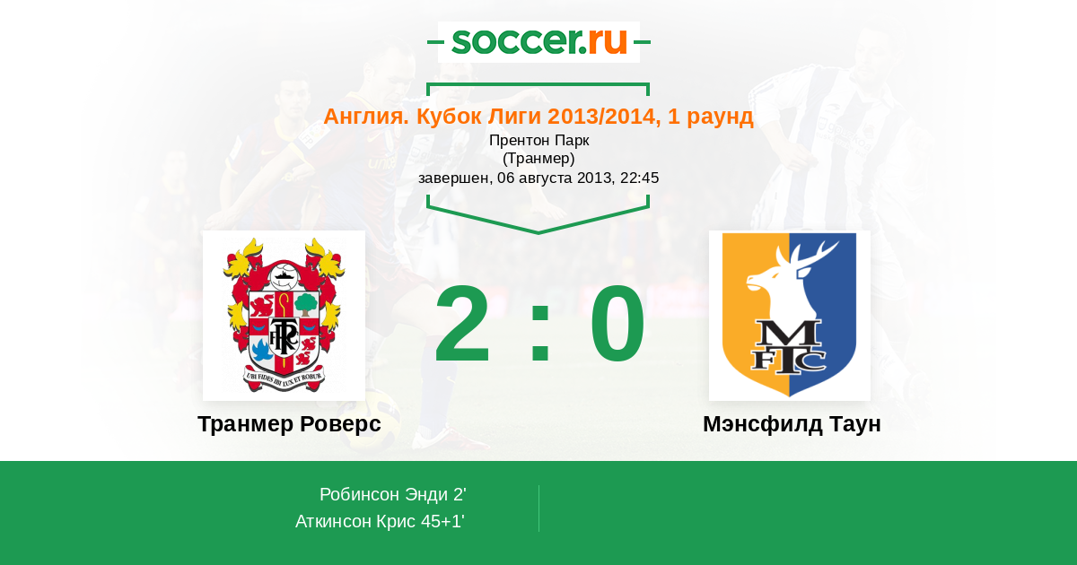 Транмер Роверс - Мэнсфилд Таун: обзор матча 6 августа 2013