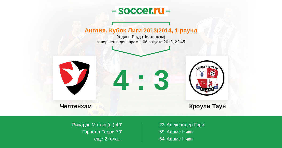 Челтенхэм - Кроули Таун: обзор матча 6 августа 2013