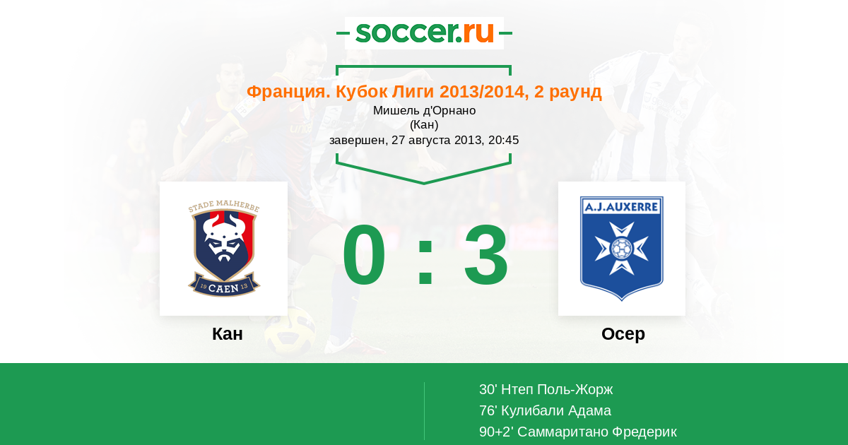 57' Желтая карточкаЛоготип ОсерНтеп Поль-Жорж (7) получил ж.к.
