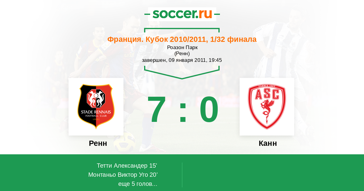 Ренн - Канн: обзор матча 9 января 2011
