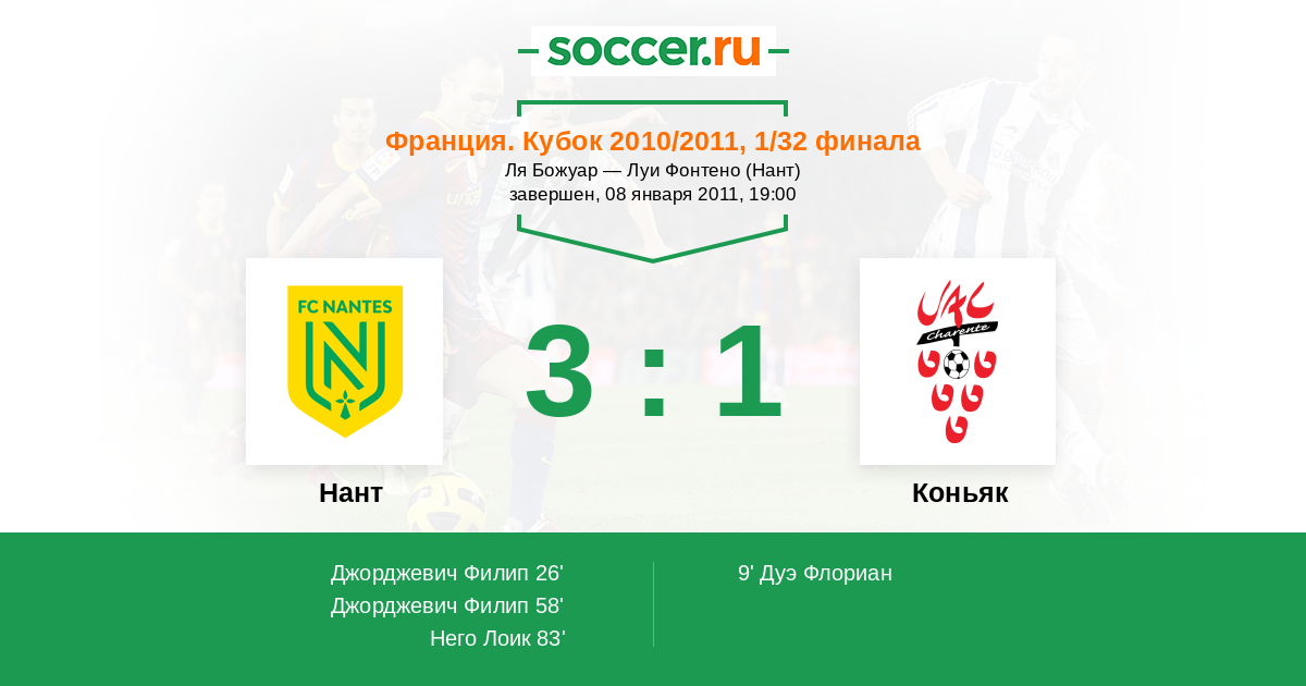 Нант - Коньяк: обзор матча 8 января 2011