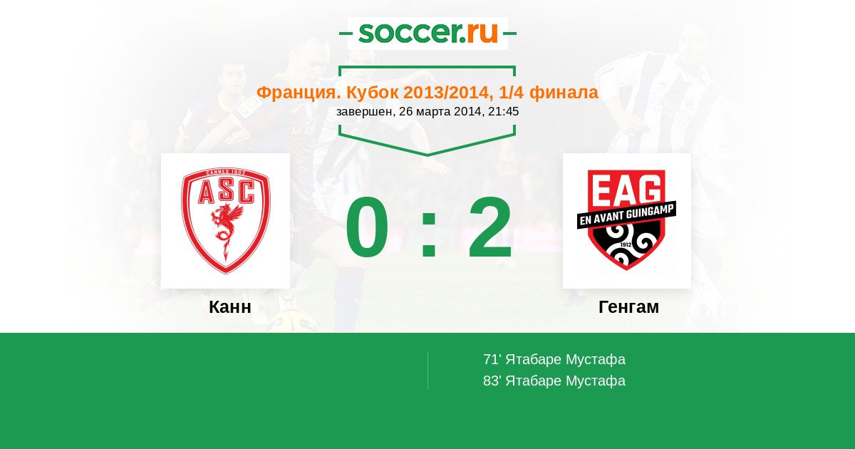 Канн - Генгам: обзор матча 26 марта 2014