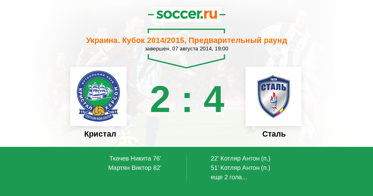 Кристал - Сталь: обзор матча 7 августа 2014