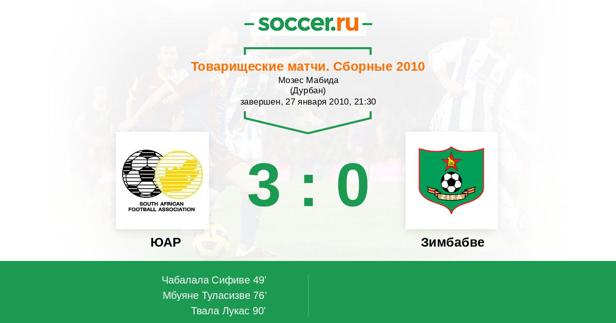 ЮАР - Зимбабве: обзор матча 27 января 2010