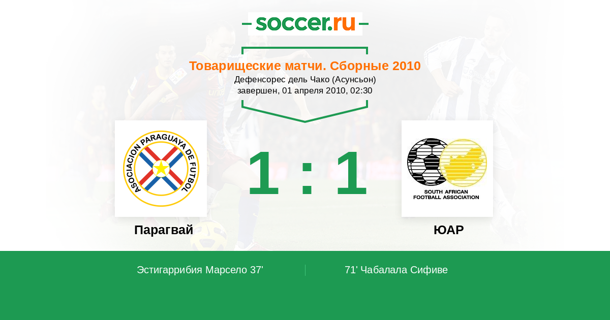 Парагвай - ЮАР: обзор матча 1 апреля 2010