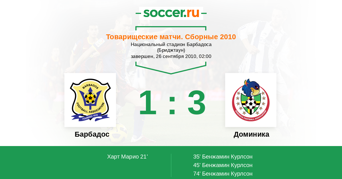 Барбадос - Доминика: обзор матча 26 сентября 2010
