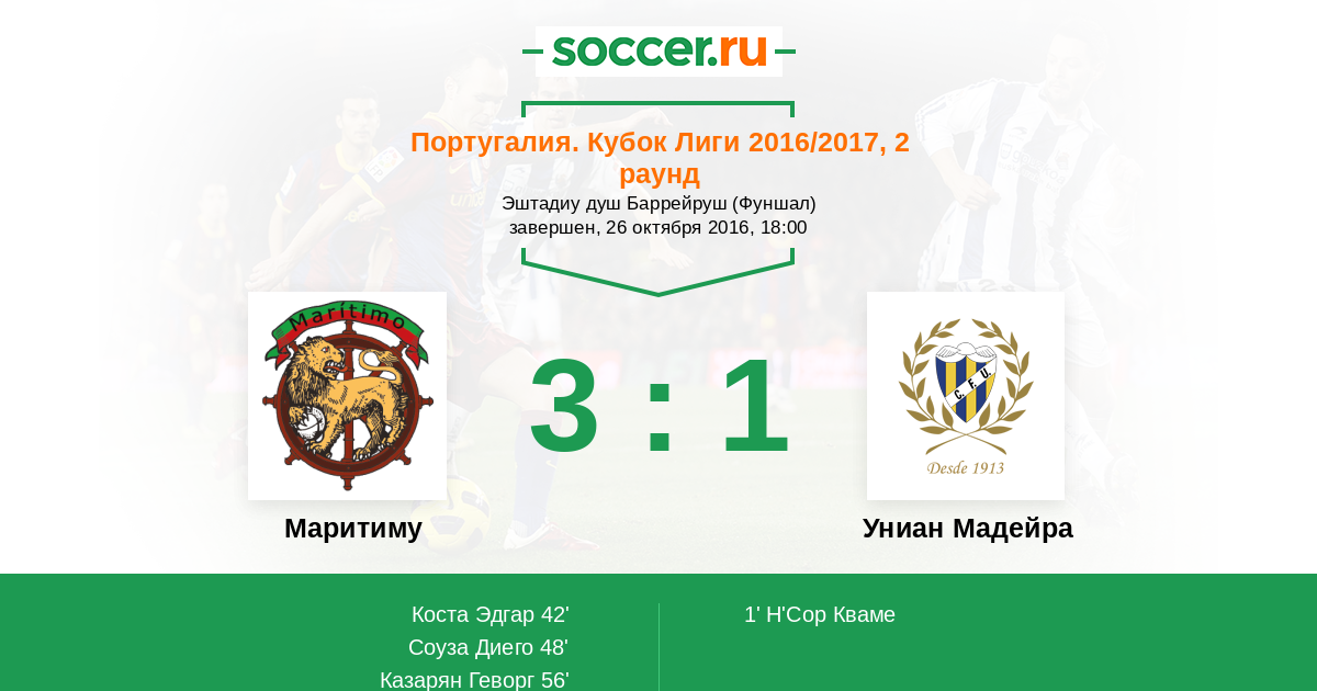 Маритиму - Униан Мадейра: обзор матча 26 октября 2016