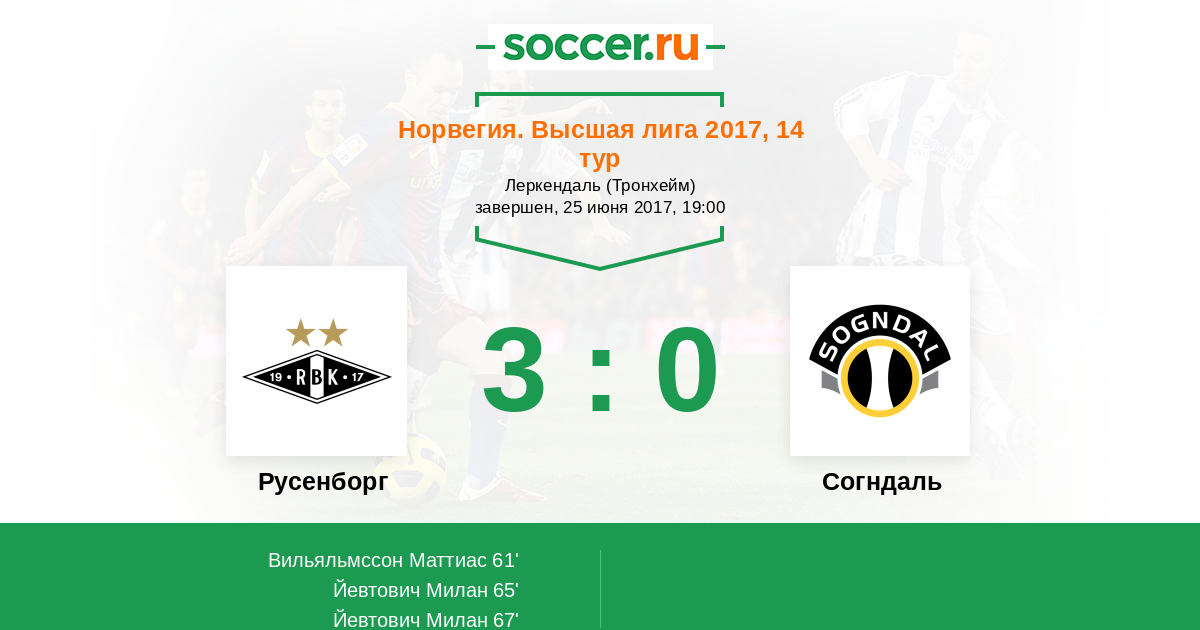 Русенборг - Согндаль: обзор матча 25 июня 2017