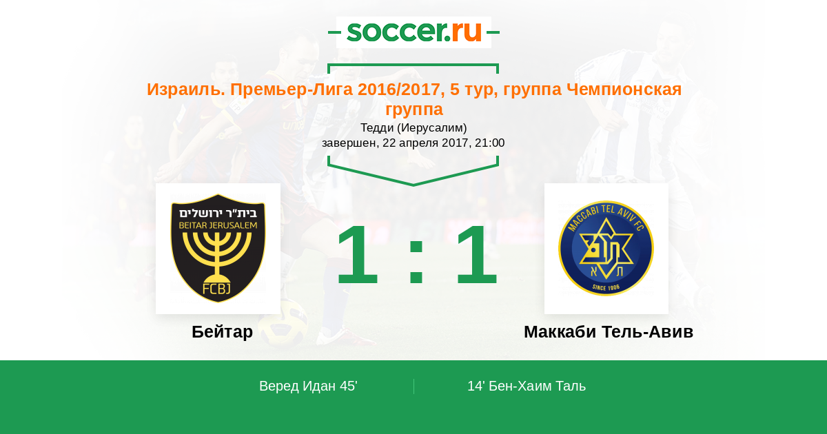 Бейтар - Маккаби Тель-Авив: обзор матча 22 апреля 2017