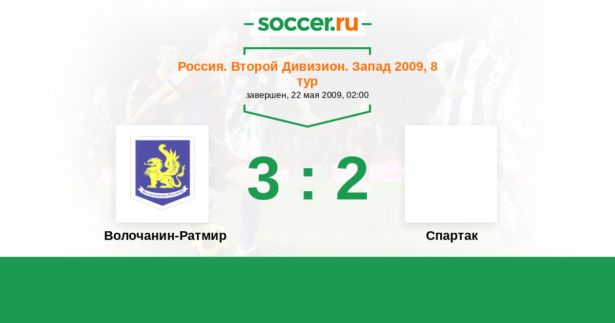 Волочанин-Ратмир - Спартак: обзор матча 22 мая 2009