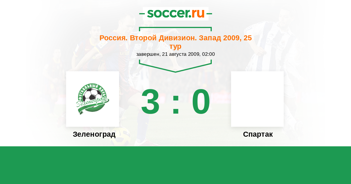 Зеленоград - Спартак: обзор матча 21 августа 2009
