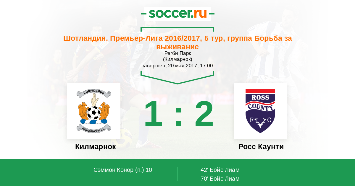 Килмарнок - Росс Каунти: обзор матча 20 мая 2017