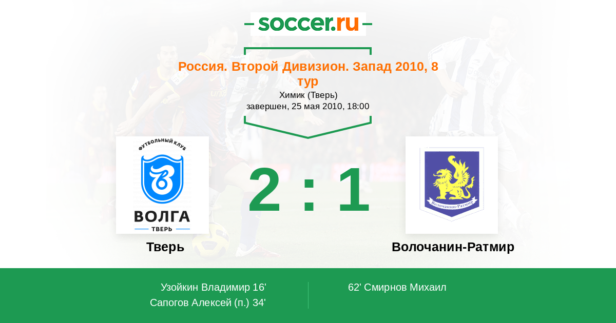 Тверь - Волочанин-Ратмир: обзор матча 25 мая 2010