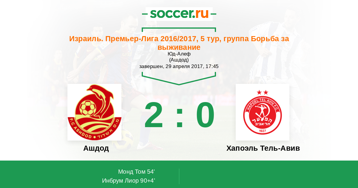 Ашдод - Хапоэль Тель-Авив: обзор матча 29 апреля 2017