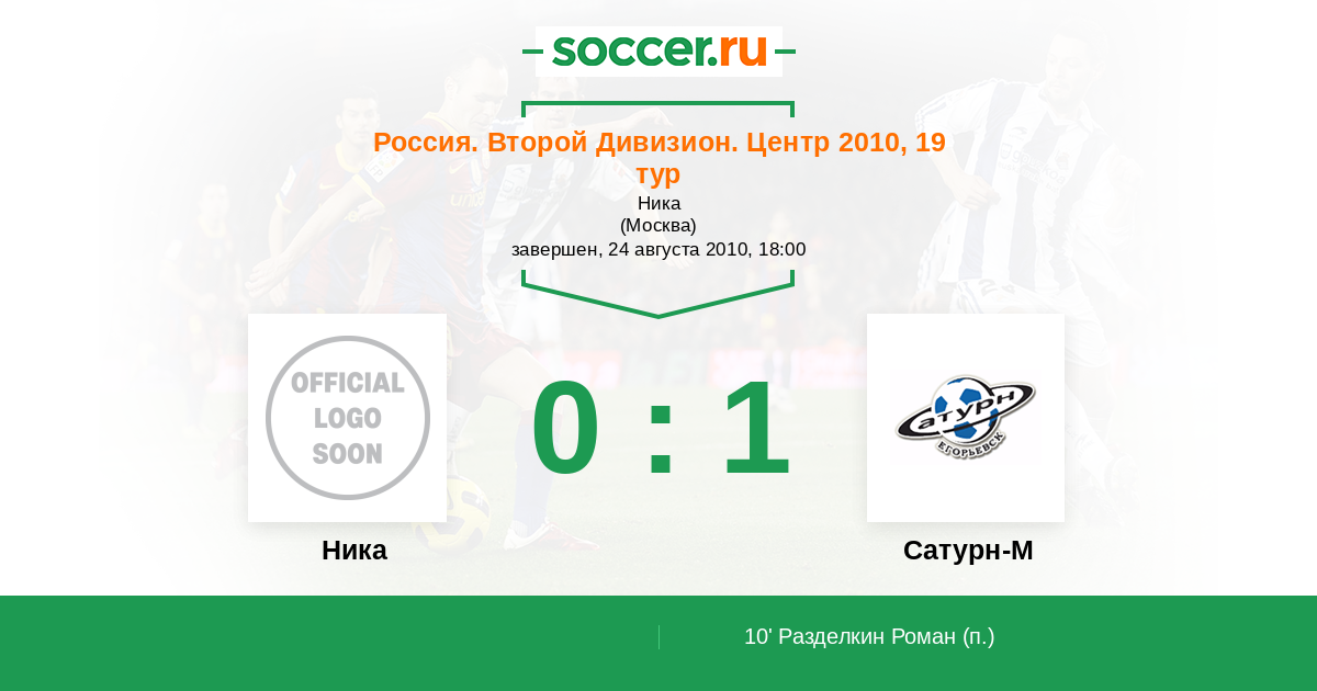 Ника - Сатурн-2: обзор матча 24 августа 2010