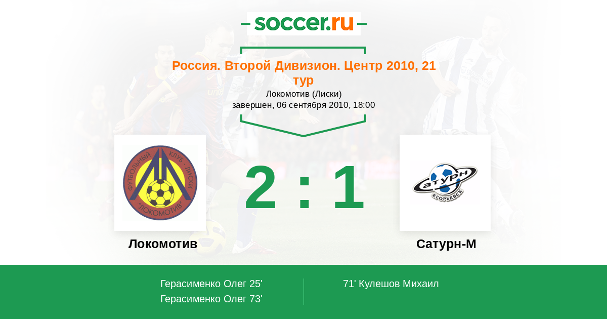 Локомотив - Сатурн-2: обзор матча 6 сентября 2010