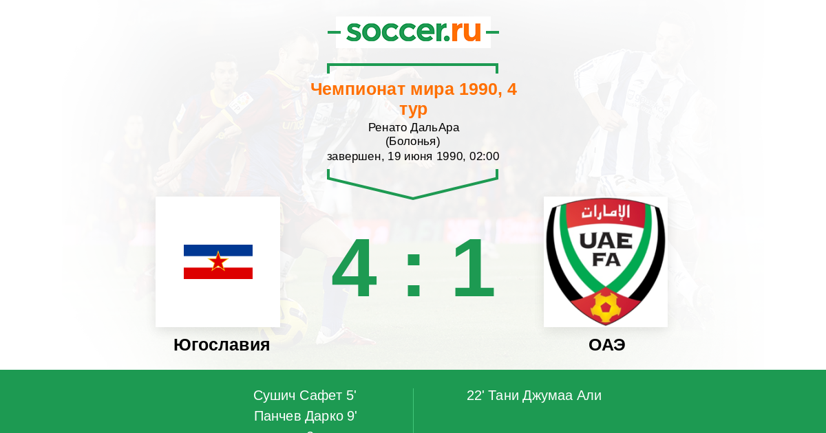 Югославия - ОАЭ: обзор матча 19 июня 1990