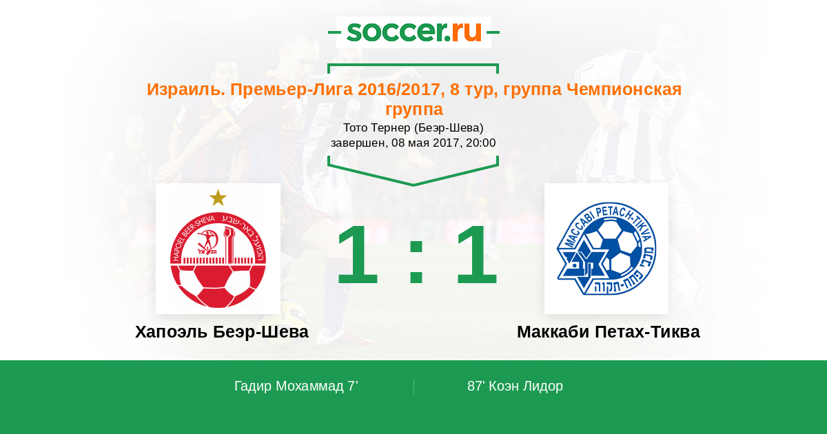 Хапоэль Беэр-Шева - Маккаби Петах-Тиква: обзор матча 8 мая 2017