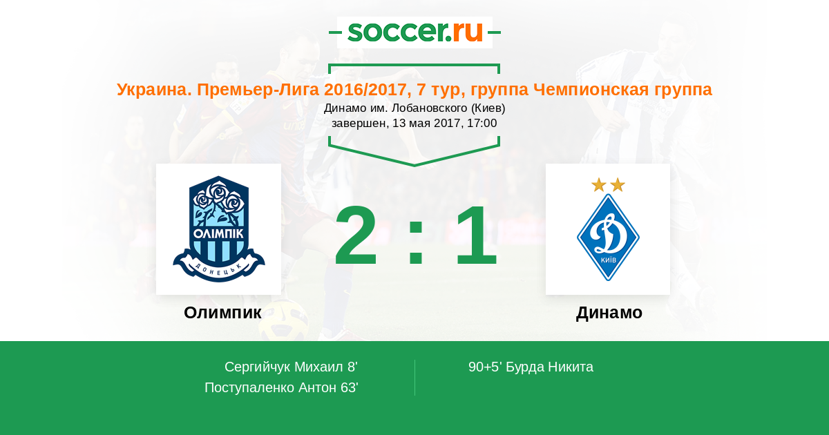Олимпик - Динамо: обзор матча 13 мая 2017