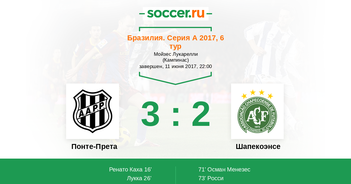 Понте-Прета - Шапекоэнсе: обзор матча 11 июня 2017