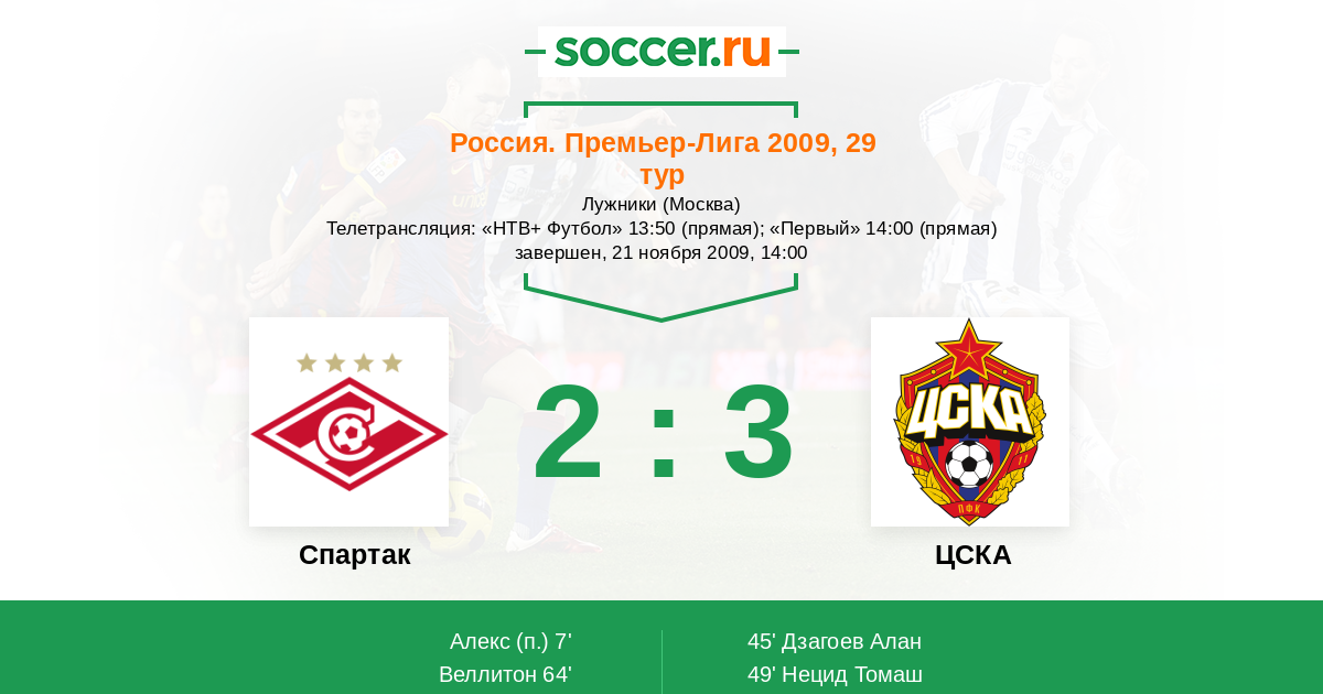 Спартак - ЦСКА: обзор матча 21 ноября 2009