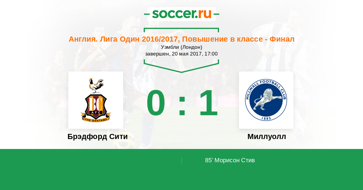Брэдфорд Сити - Миллуолл: обзор матча 20 мая 2017