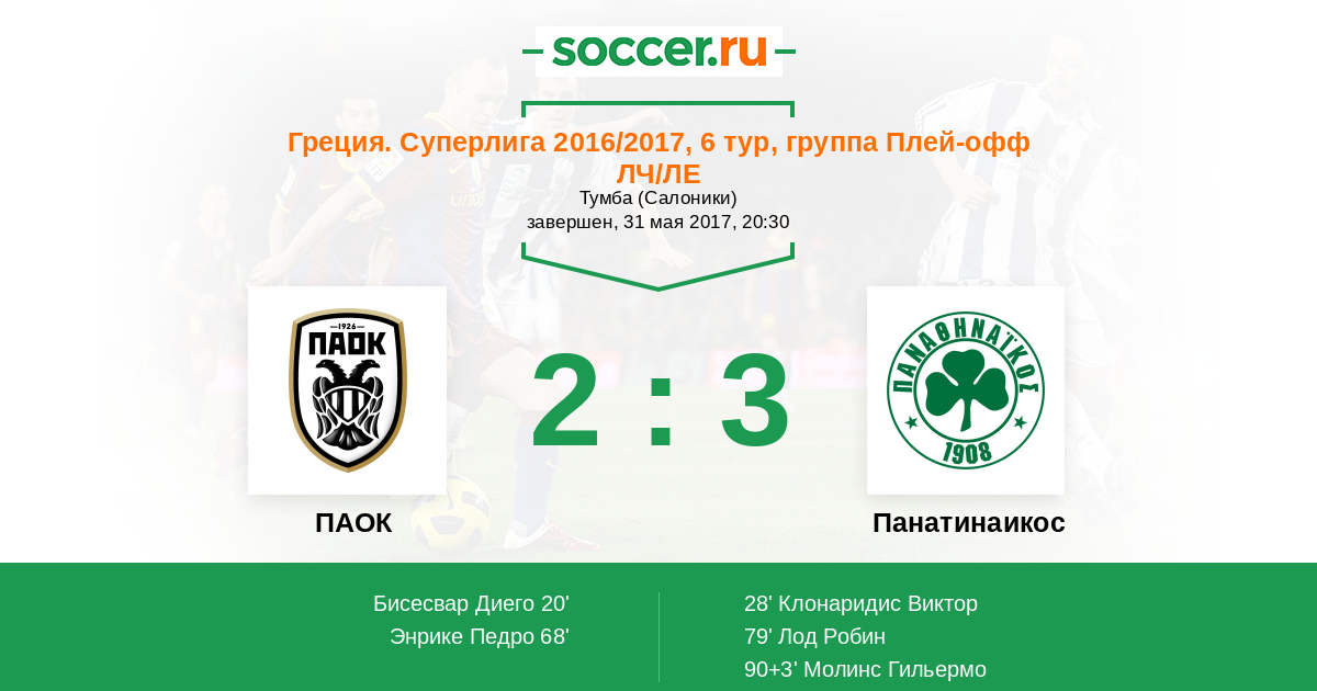 ПАОК - Панатинаикос: обзор матча 31 мая 2017