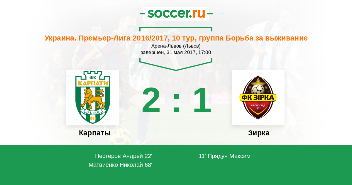 Карпаты - Зирка: обзор матча 31 мая 2017